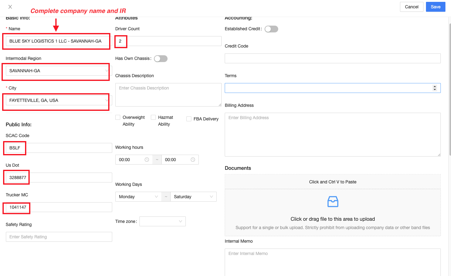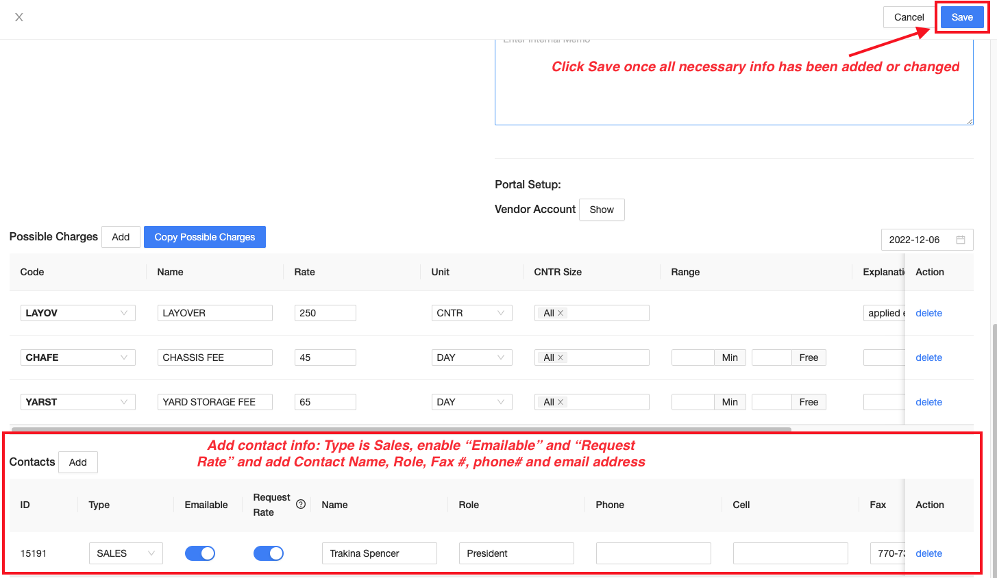 A.2. Add or edit necessary information based on email or from DO. Once done, click Save.