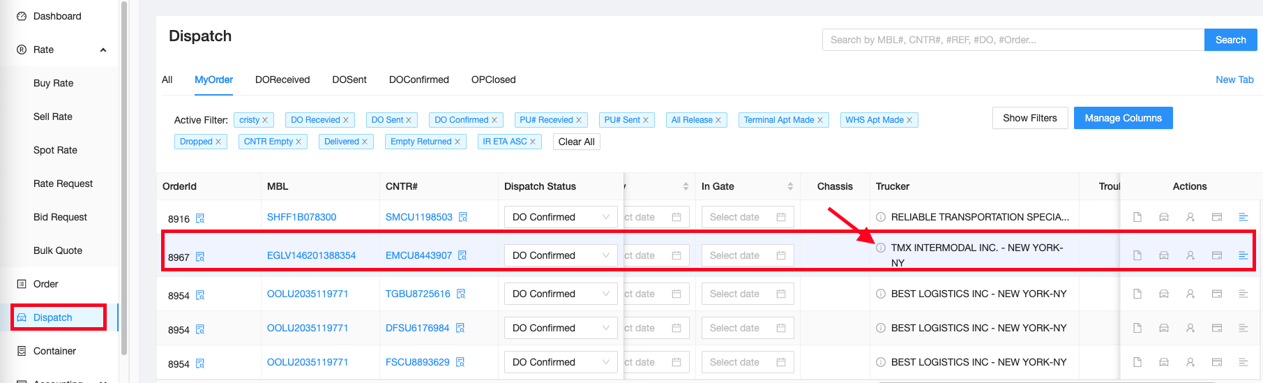 A.1. Update vendor information using Dispatch Tab. Go to Trucker column and click the trucker info.