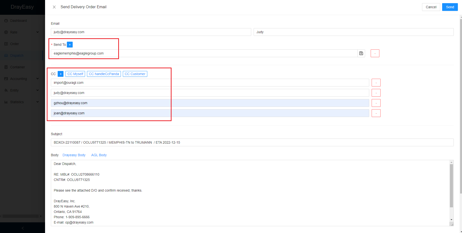 5. Check the trucker, then click Send Email.