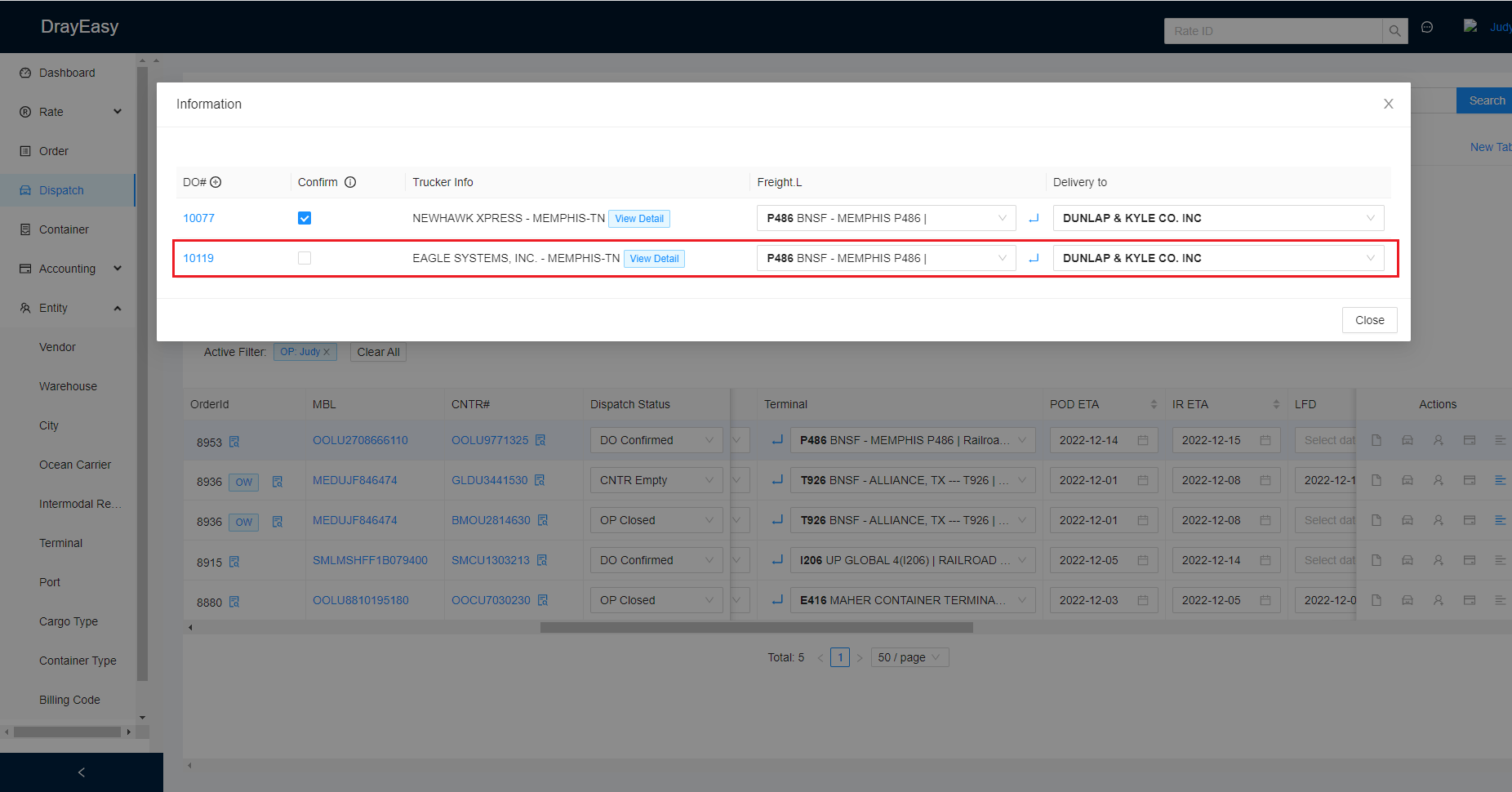 Click DO# of the second trucker.