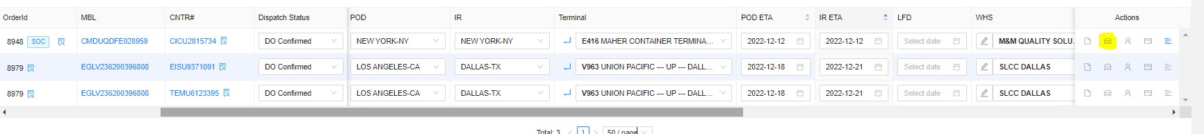 3. Click the small car icon to see the trucker/vendor assigned