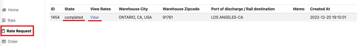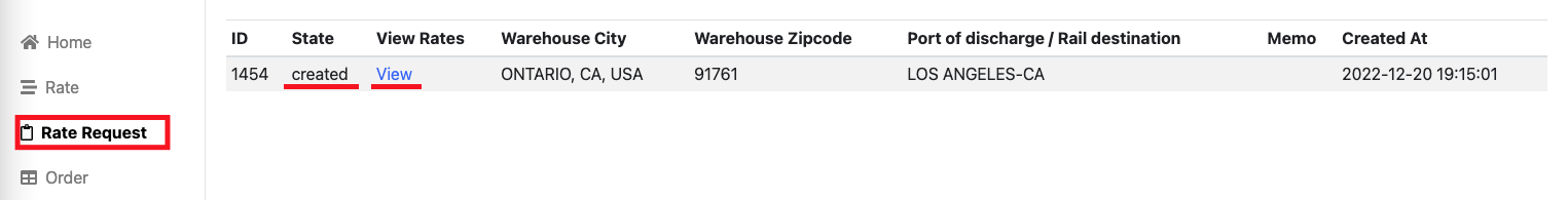 4. Go to Rate Request tab and check the status of the request.