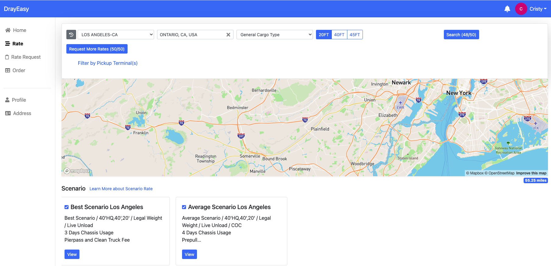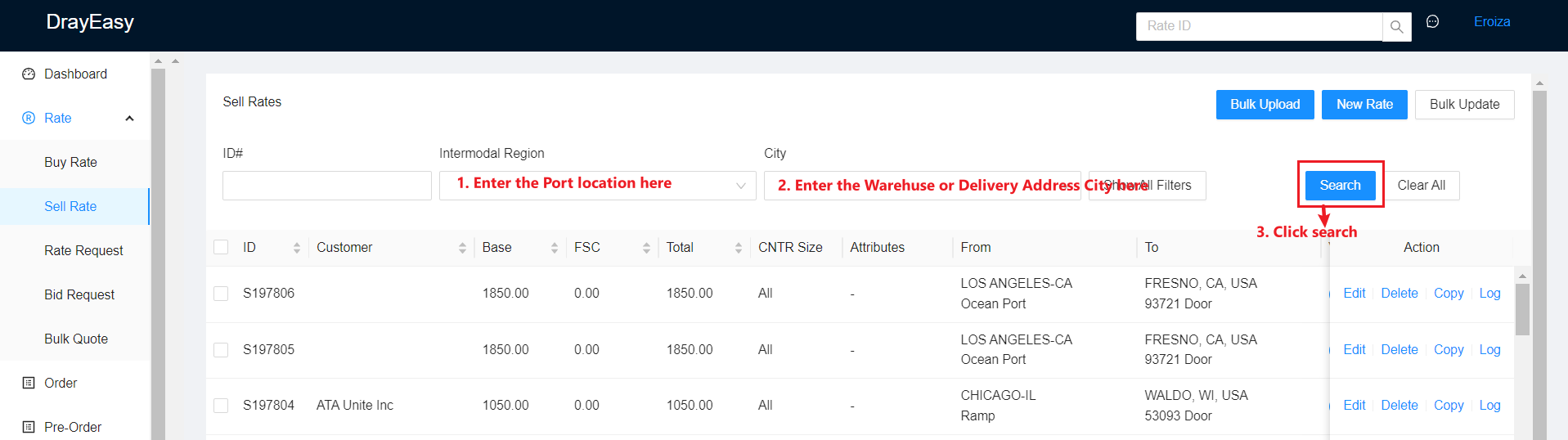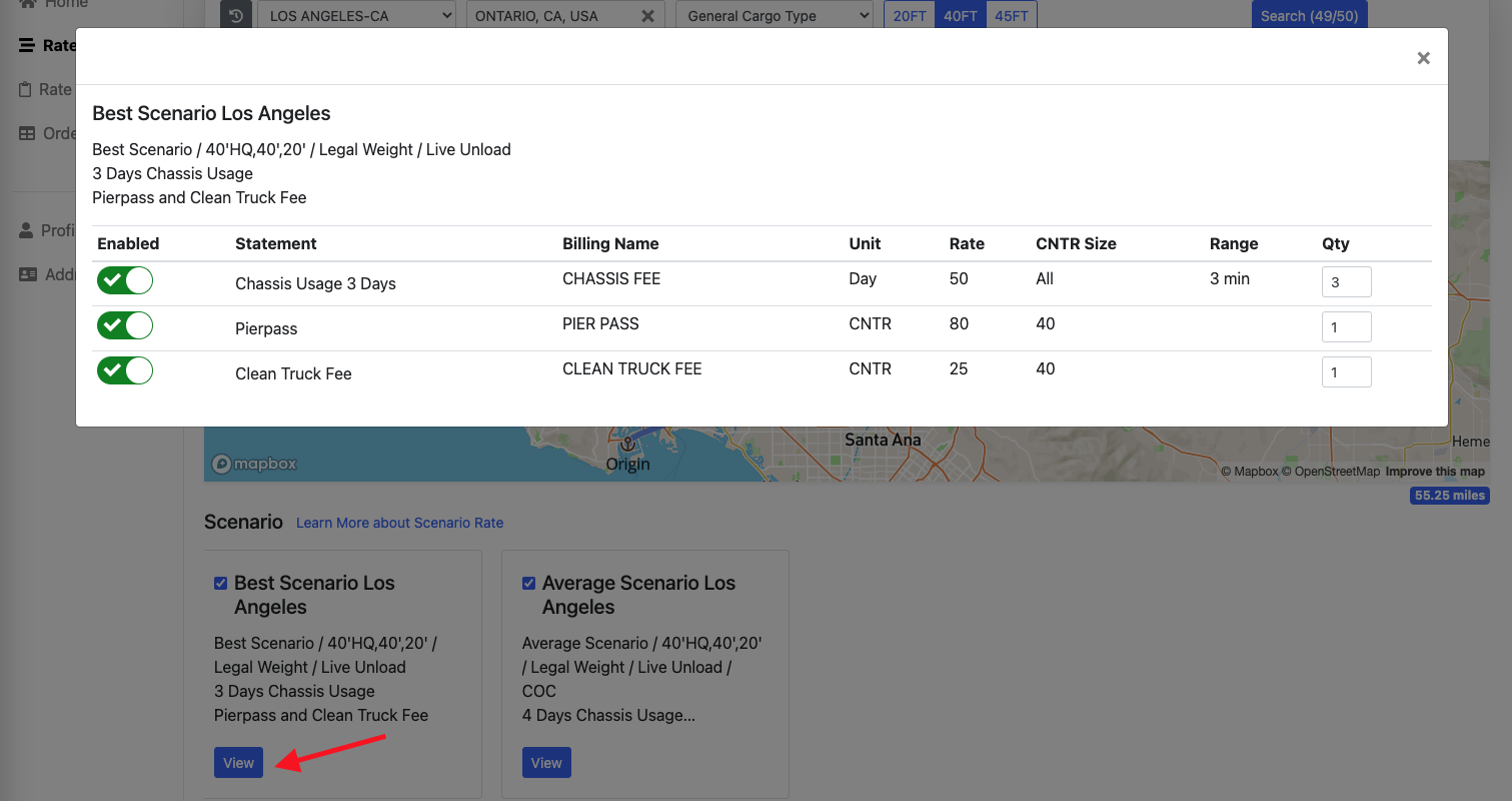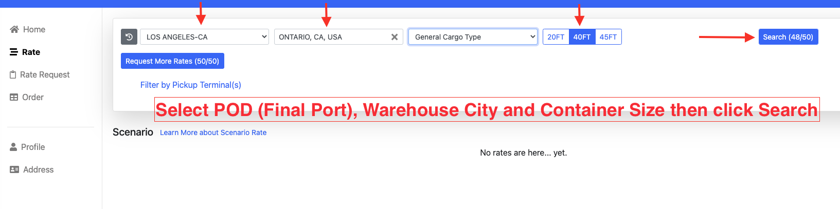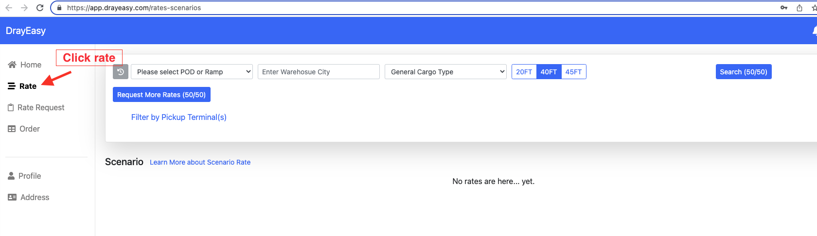 1. Log in to https://app.drayeasy.com/rates-scenarios and search rate.
