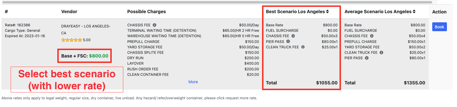Average Scenario: Average scenario includes all the known charges per port/ramp and other charges that occur frequently based on the bills we received. 95% of the bills are below the average scenario rate. The Average Scenario is NOT a guarantee of the maximum charge of you bill. It’s just a tool to help you understand the potential charges from each port/ramp so you could plan your budget wisely.