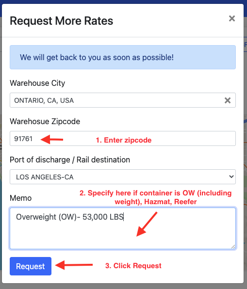 *Please note that when our request is rejected or we're not able to get rates from the system, we can send an email directly to the customer to request for more rates.