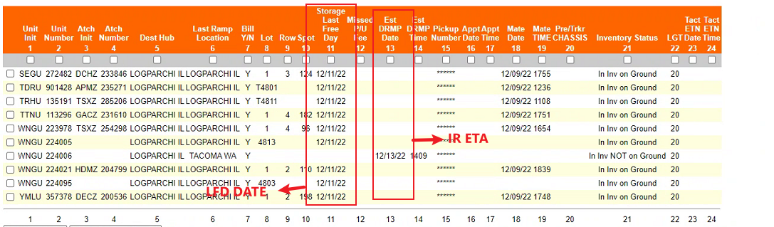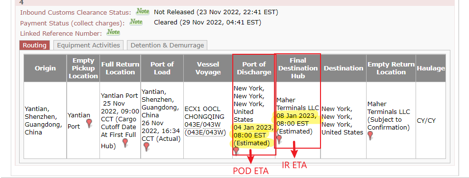 * * * IR ETA Date - ETA to the Final Port