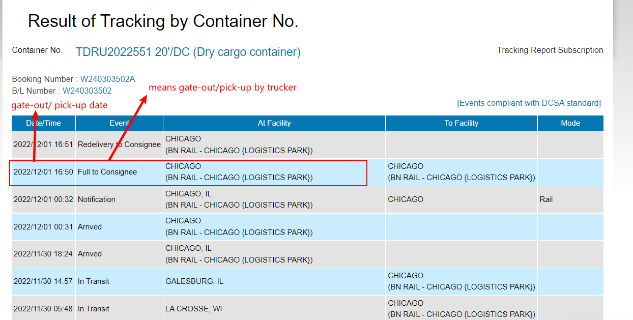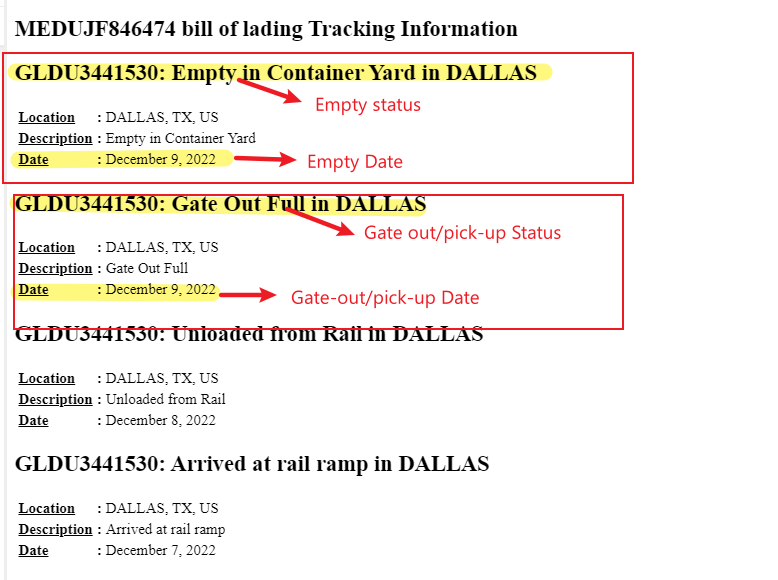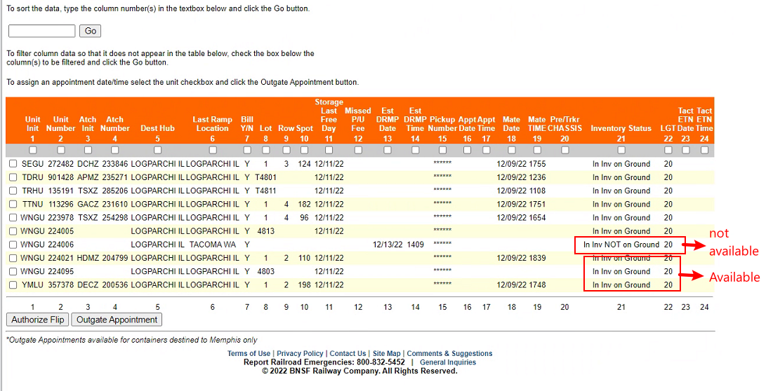* * * Gate-Out or Picked Up (You can check this using MBL#)