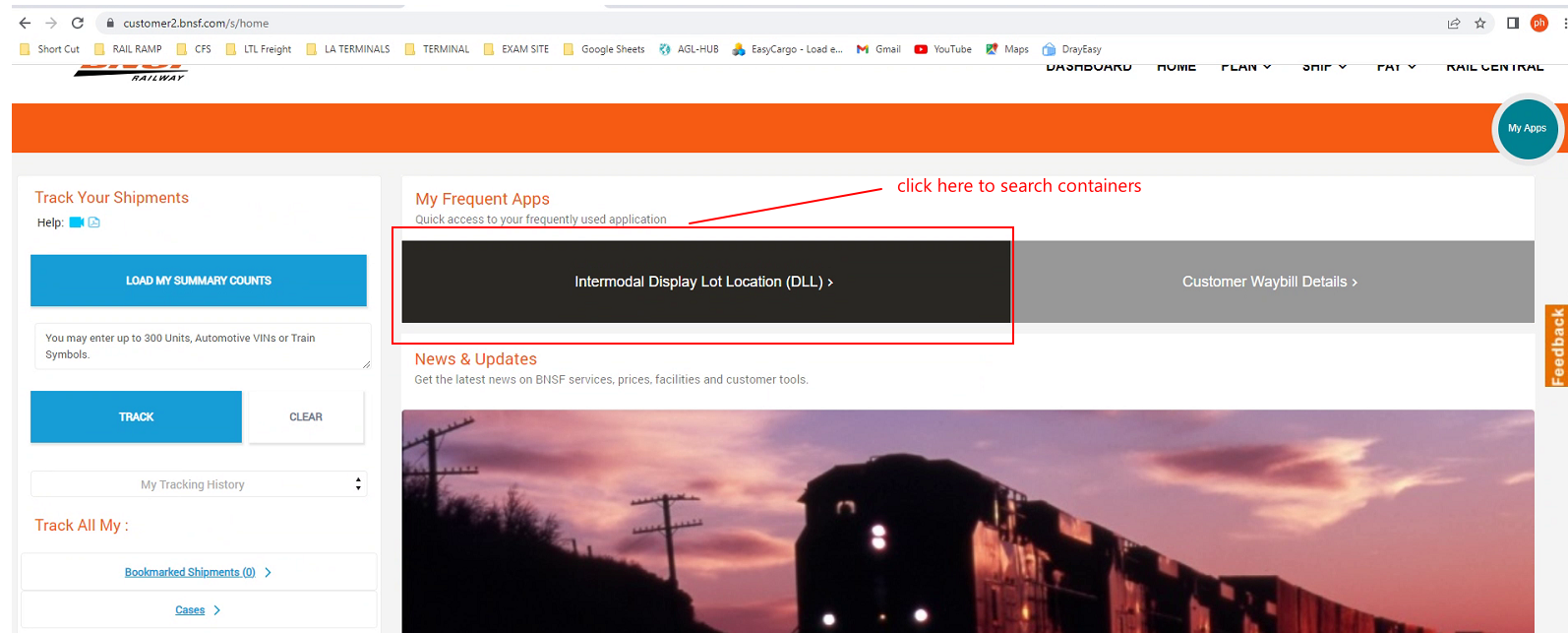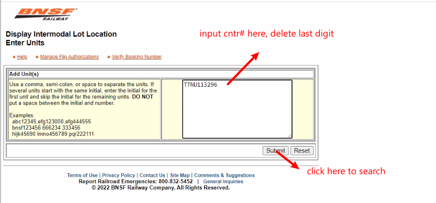 2. Input container number in the Container Search Box.