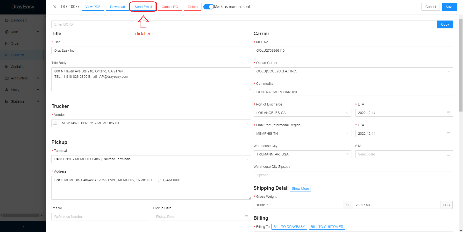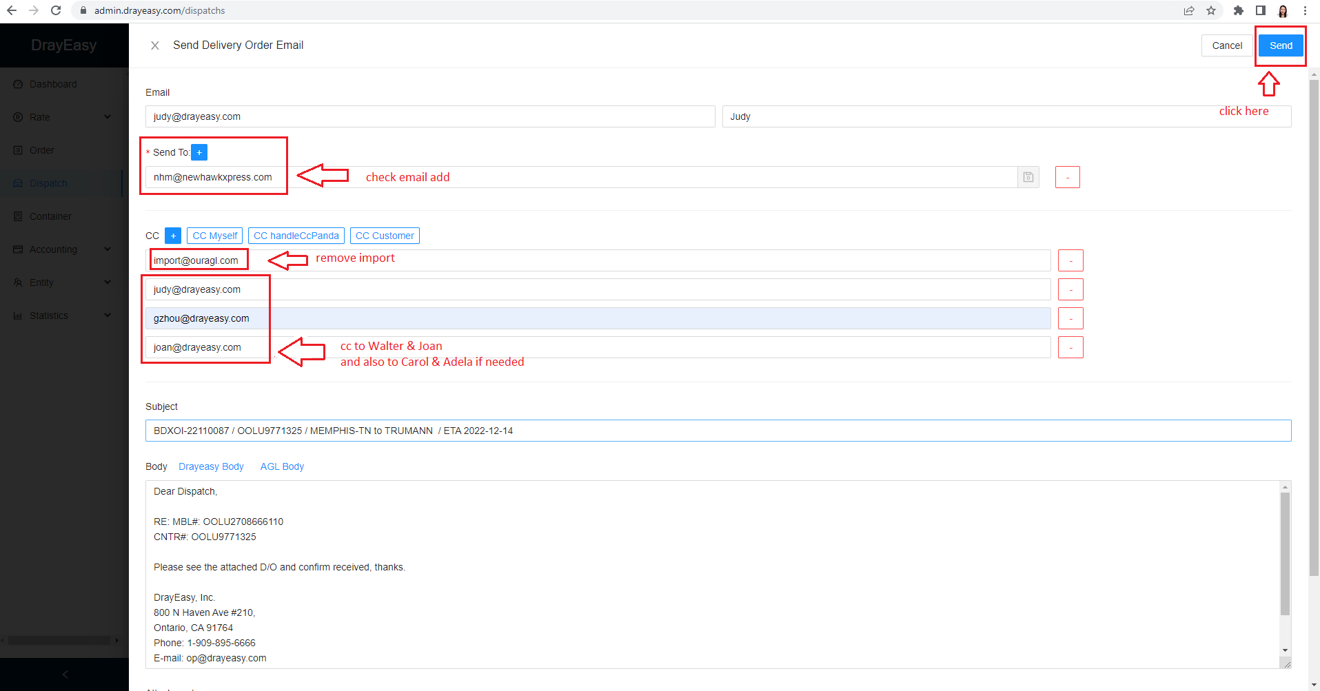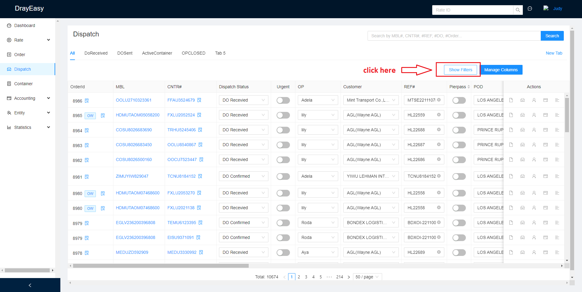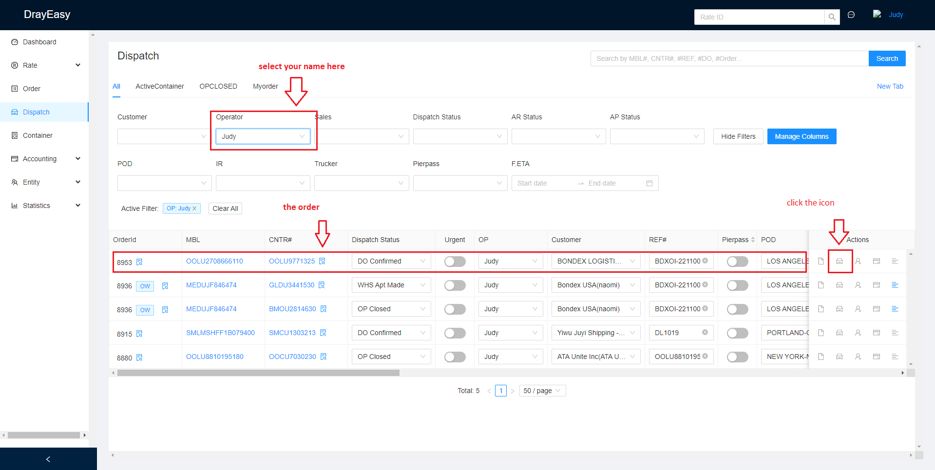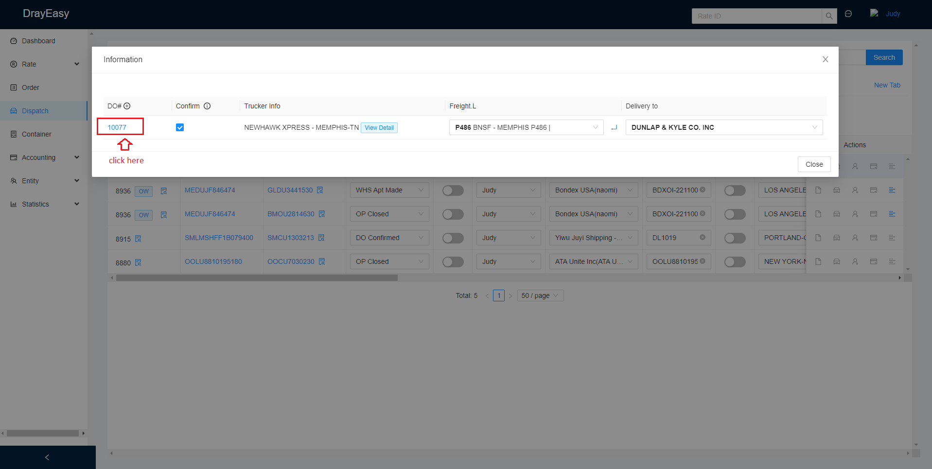 1. Log in to https://admin.drayeasy.com/ ,find the Dispatch bar.