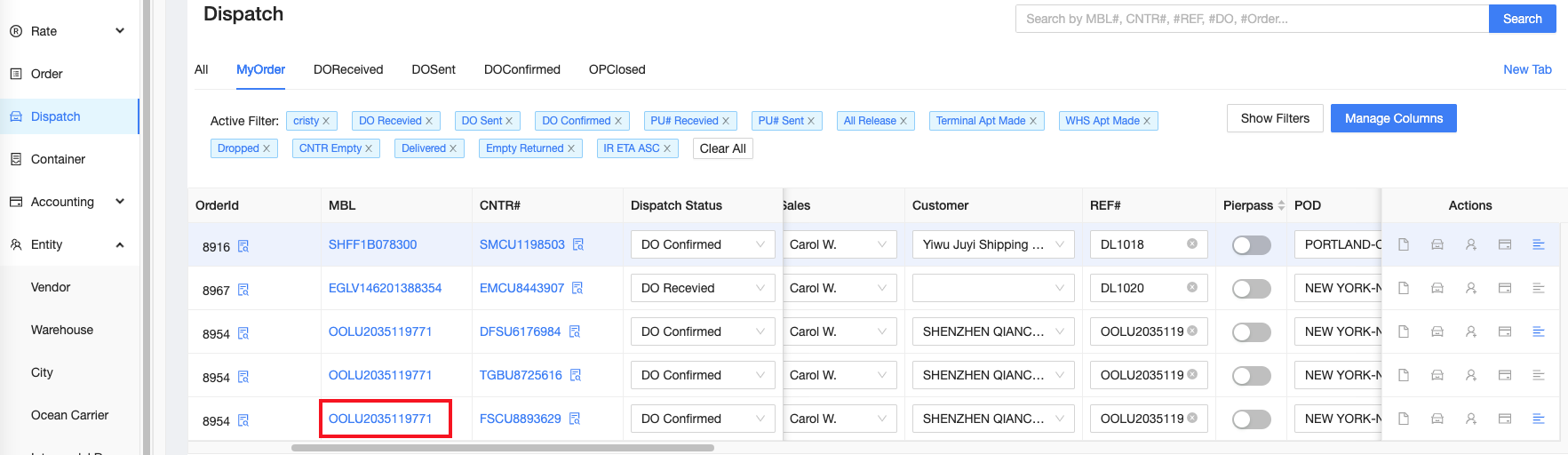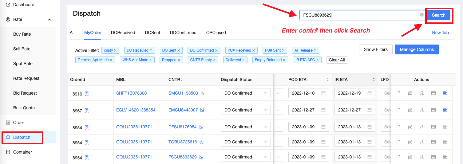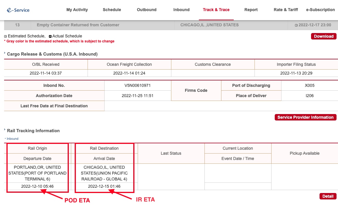 3. Check the POD ETA and IR ETA thru MBL no. or terminal link.
