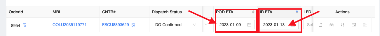 **IR ETA- Estimated Time of Arrival at Final Destination