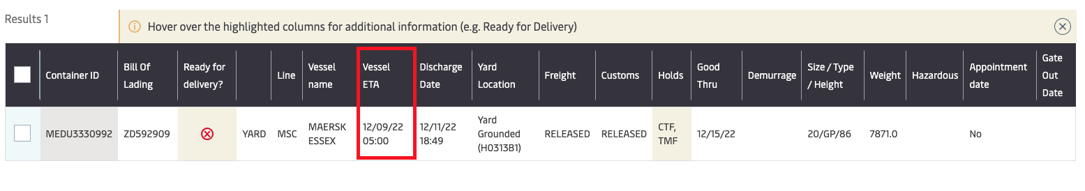 **POD ETA - Estimated Time of Arrival at Port of Discharge